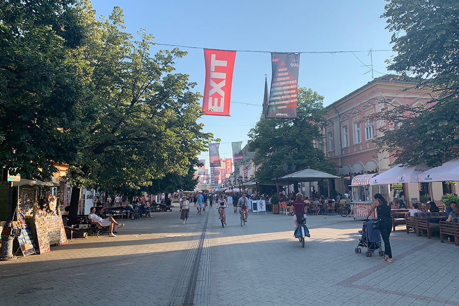 A view of Dunavska Street, the pedestrian centre of Novi Sad. It is home to hundreds of little shops and stalls, world-class restaurants, street performers, and locals enjoying all that their city has to offer.